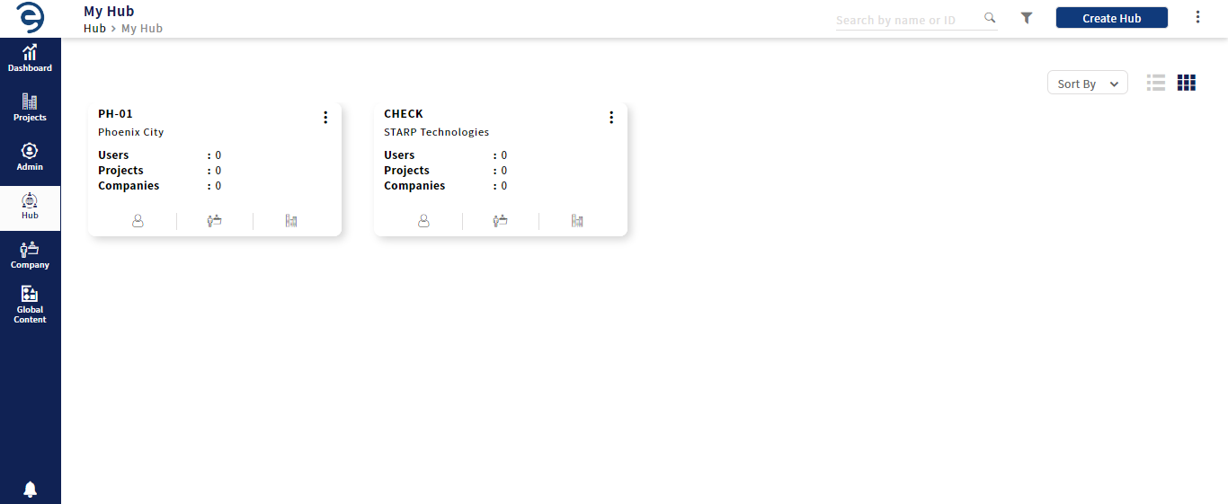 - Select Hub from the side Navigation and choose the desired Hub from the listed Hubs